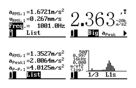 2.新增振动1/3OCT频谱分析功能,符合标准:GB/T3241;中心频率:4Hz~2.5kHz,16Hz~10kHz,可用于振动特征分析。