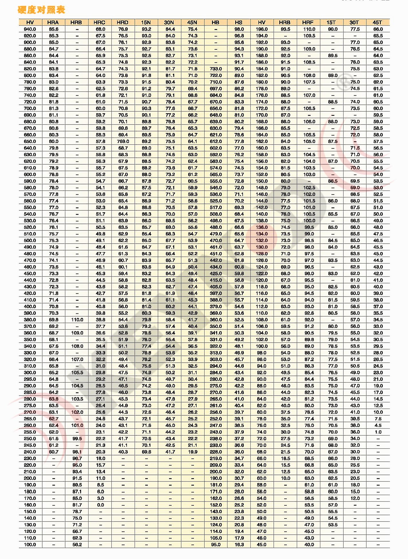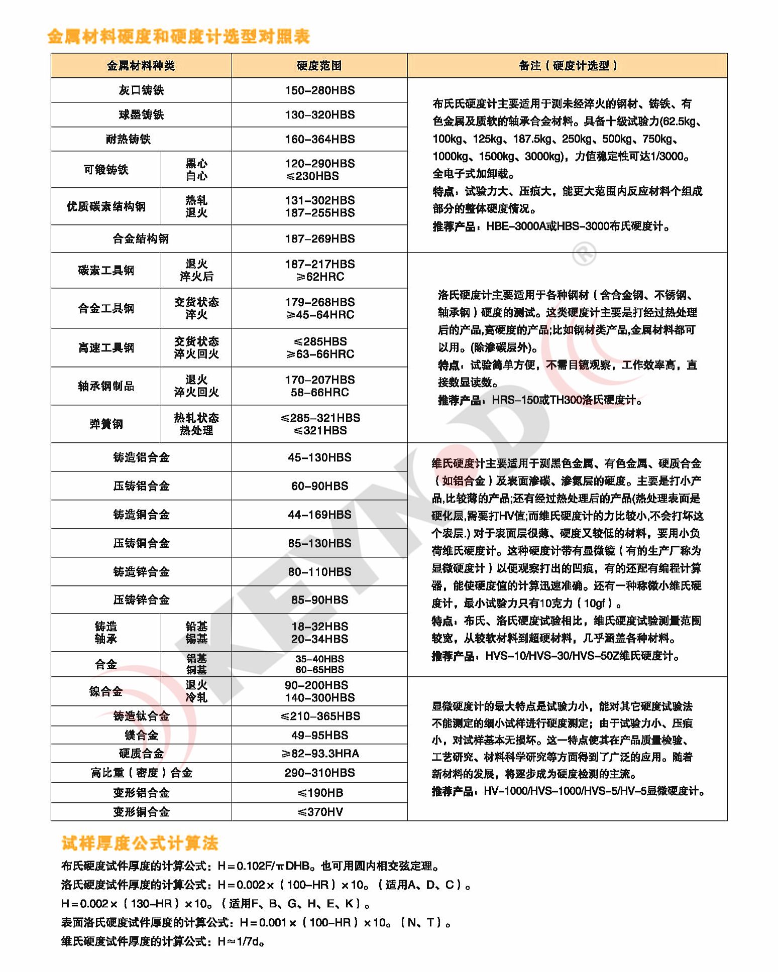 金属材料硬度、硬度计的选型对照表和硬度对照表