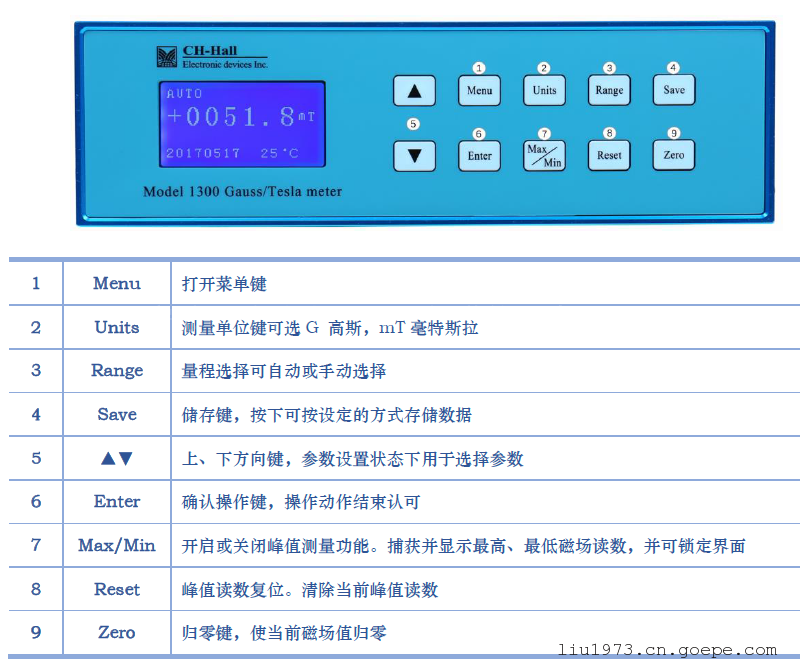翠海CH-1300型全数字高斯计/特斯拉计是一款较高精度的智能化仪器,适合要求较高精度、较高分辨率的磁场测试应用,是一款集测试、存储、工控、通讯为一体的自动化仪表,常用于科学研究、工业生产、医疗等领域,该款仪器的操作说明如下: