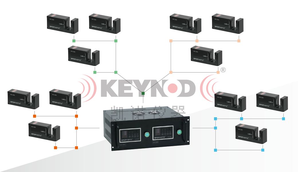 二、如果需要同时测量多头线(丝)外径,除测控主机外根据需要配备多台微细线激光测径仪(如下图示,樶多可配24台),该测量方式可广泛应用于拉丝、多头拉丝、漆包线、单丝、贵金属丝等行业产品在线外径测控,是现代精密线(丝)材生产不可或缺的品管利器。微细线激光外径测量系统主机采用高速DSP处理系统,能快速采集每个测量头的测量数据并传输到电脑。测量数据通过软件界面直观展现出来,并可配备超差声光报警提示,实时掌控产品外径品质。