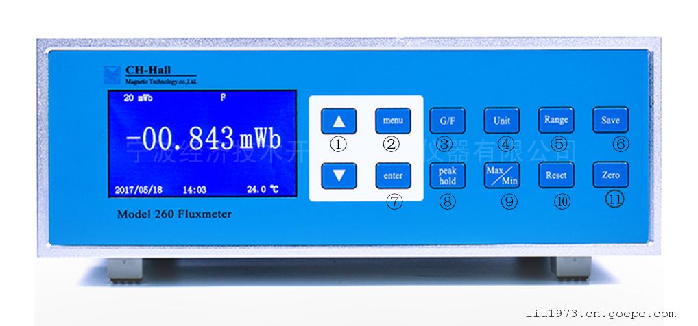 ④磁通测量时测量单位mWb毫韦伯、KMX(千麦克斯韦尔),磁强单位键可选G高斯、mT亳特斯拉。