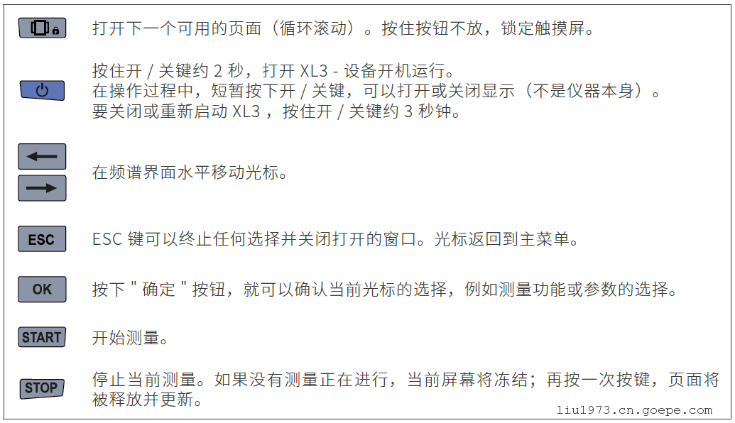 二、NTI AUDIO声学分析仪 XL3 (声级计部分)按键与触屏操作使用说明: