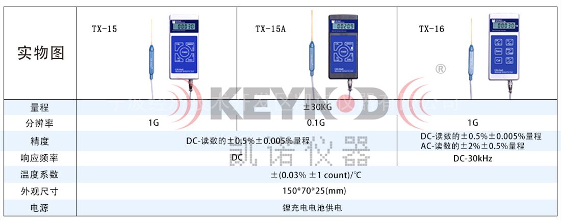 一、翠海手持式高斯计特拉斯计TX-15、TX-15A、TX-16性能对比表: