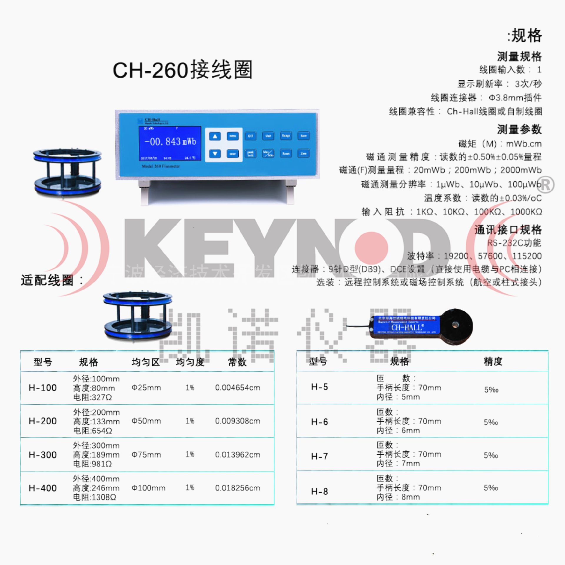 一、智能型磁通计高斯计翠海CH-260与配套亥姆霍兹线圈: