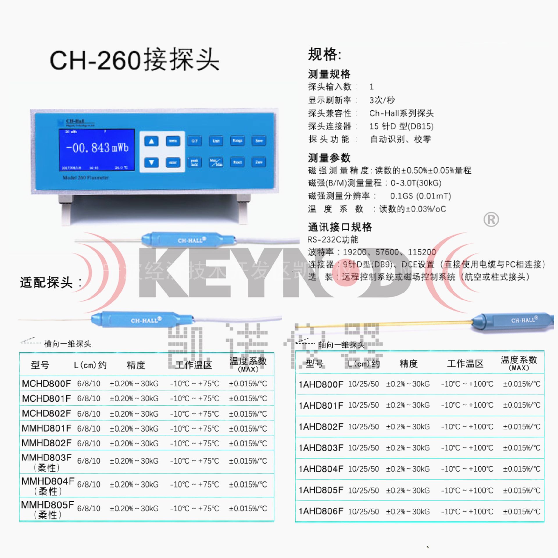 二、智能型磁通计高斯计翠海CH-260与配套砷化镓Hall探头: