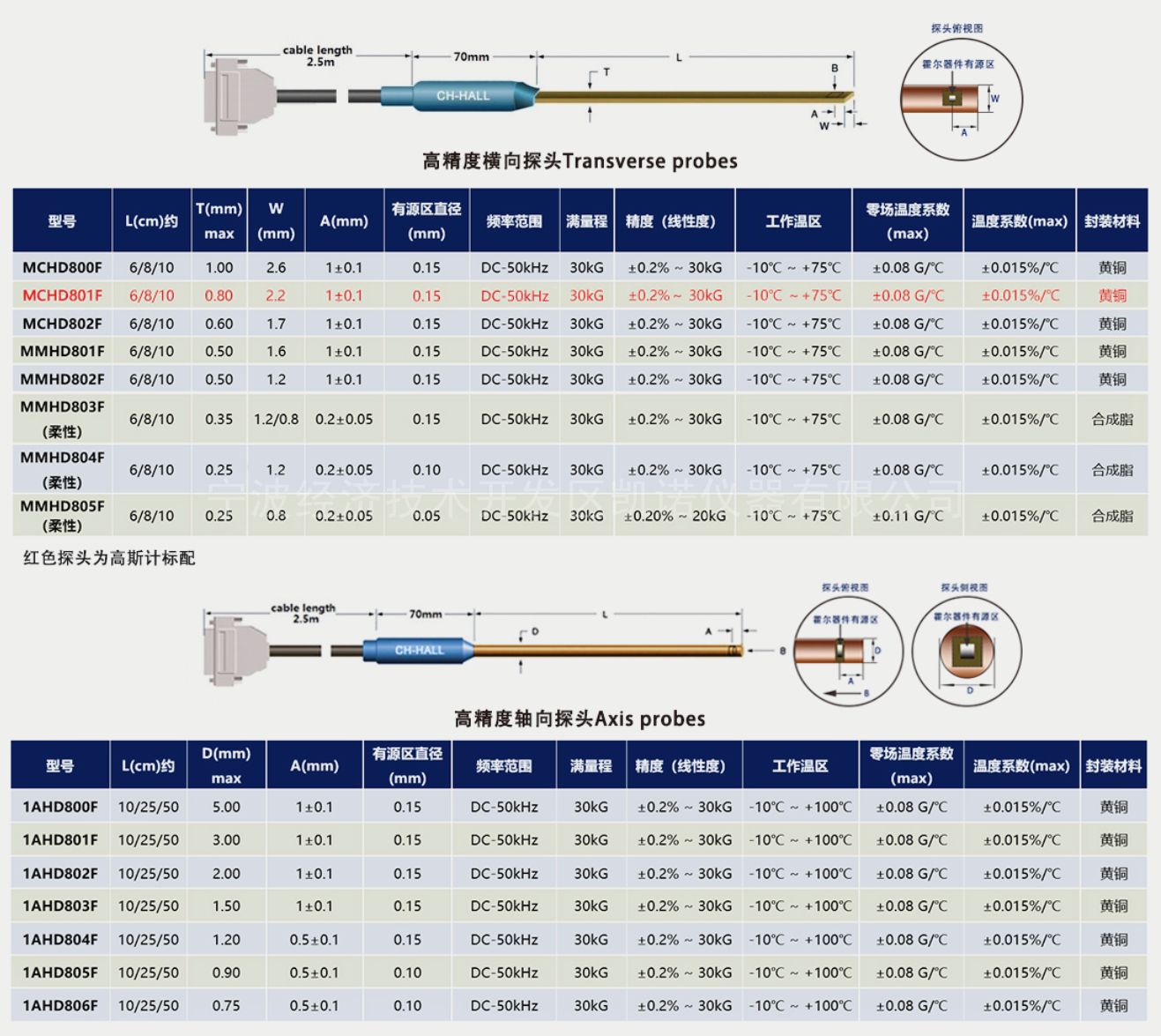 CH-1300高斯计可配常规及耐高低温一维探头、单轴探头、横向探头