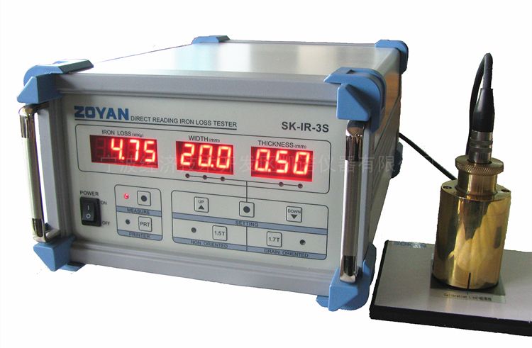 直读式硅钢片铁损测试仪SK-IR-3S为改进型新产品,是国内公司和日本SOKEN公司双方合作开发的新机种(SK-IR-3C的升级款),主要用于硅钢片铁损值的现场测量,扩展了可任意调节测试试样宽度和自校准等功能,增加了串口RS-232C输出打印功能,数据采集输出更加方便。电磁钢板 (硅钢片)、取向和无取向、冷轧和热轧钢板及普通铁板等均可使用。