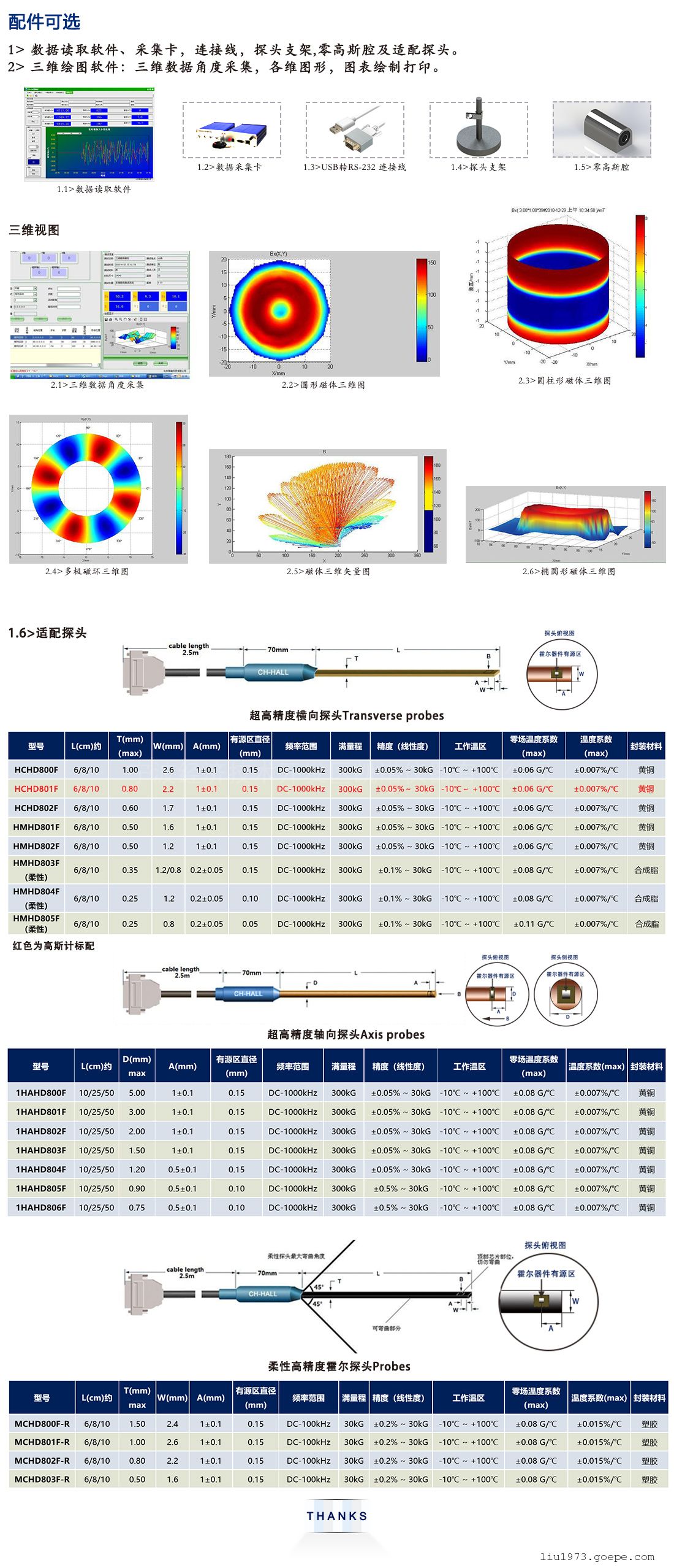 13.探头选择:CH-1800高斯计可配常规及耐高低温一维探头、单轴探头、横向探头