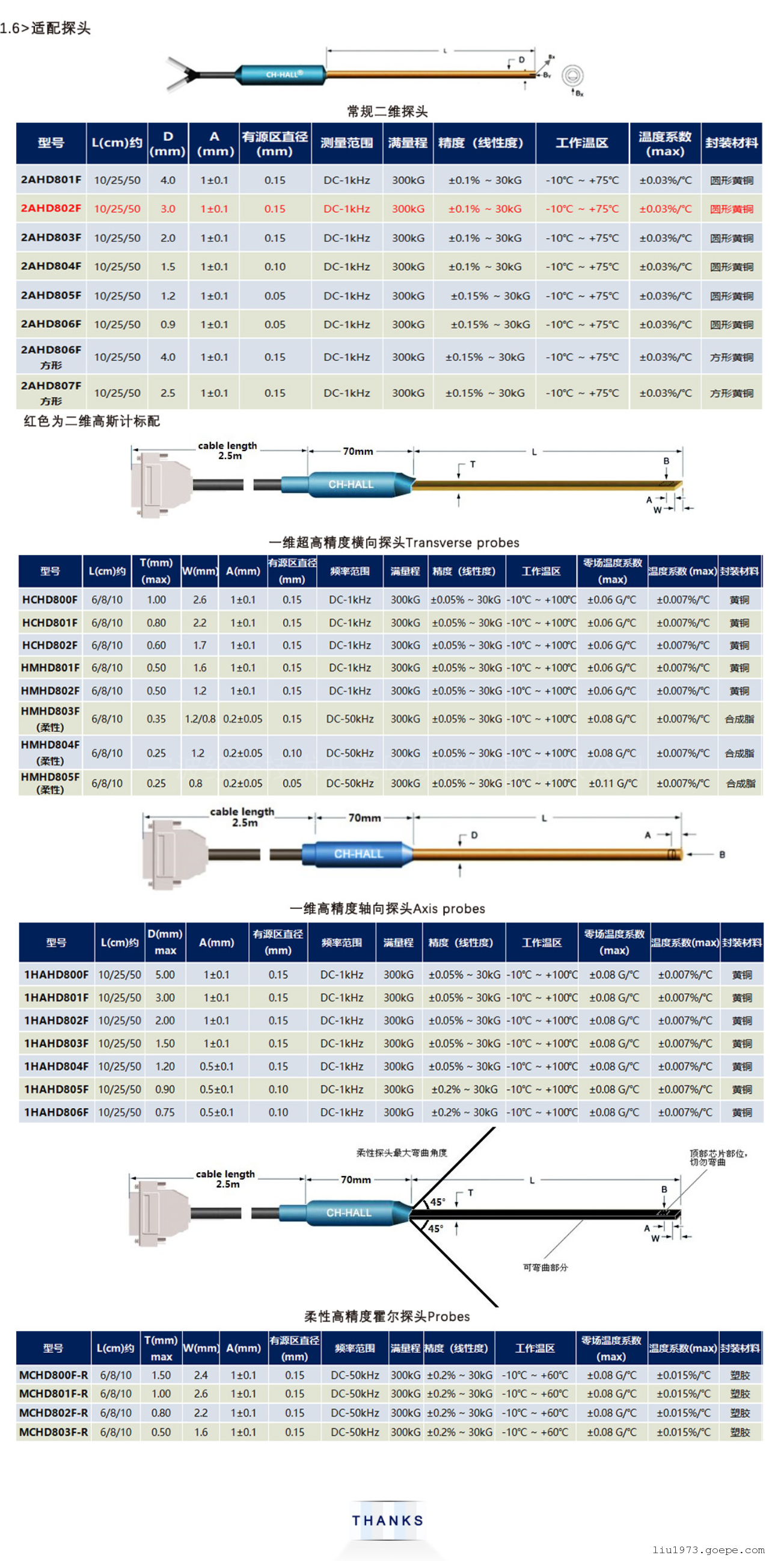 三、二维高斯计特斯拉计翠海CH-2100型可选配件与适配探头:
