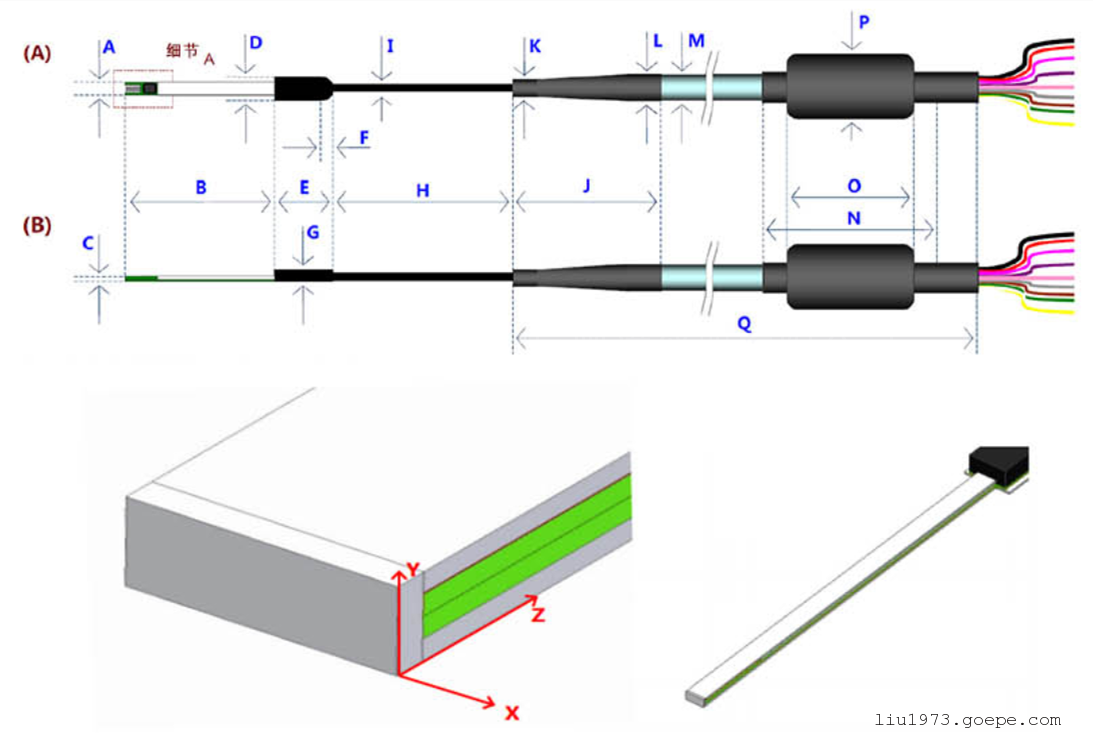 1.带有裸硅芯片的03H霍尔探头厚度(1.1毫米)长度(42毫米)