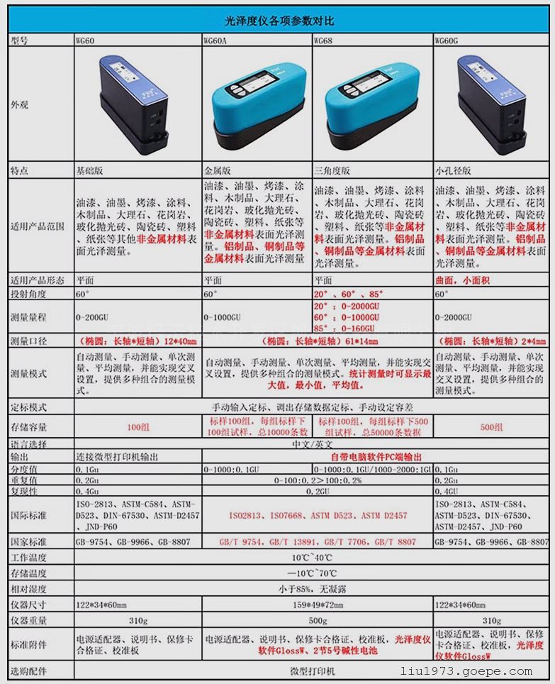 二、WG60A型60°金属光泽度仪主要技术参数: