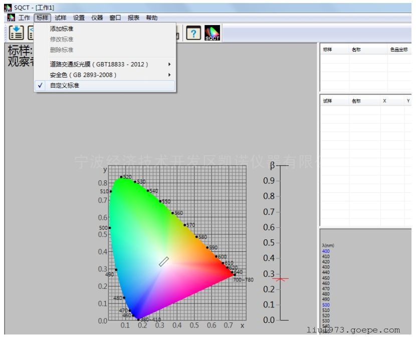 6.软件自带GB 2893安全色、GB/T 18833道路交通反光膜各种标准颜色模块7.可在多种颜色空间下进行反射光谱等多种颜色指数进行准确测量