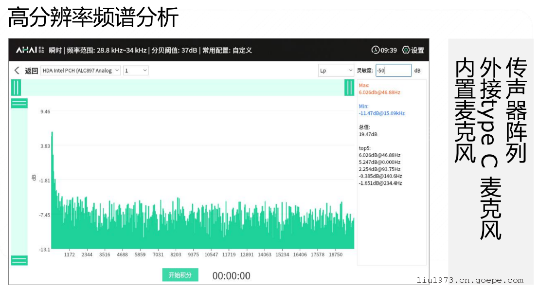 测试声压级范围:30 dB - 120 dB