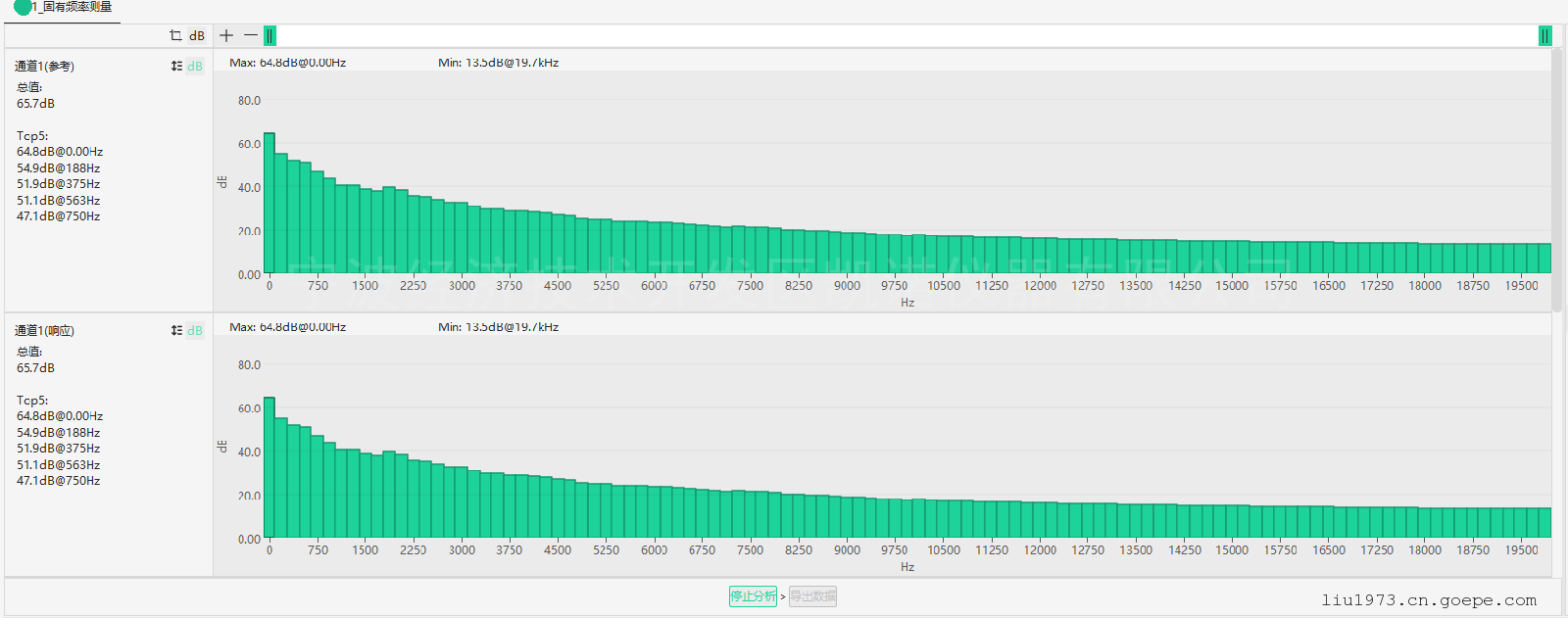 CPB: 恒百分比带宽频谱分析。根据人耳对声音频率变化的反应,把人耳可听到的频率范围分成数段,按每段内的声音强度进行分析。CPB分析中每段的带宽与中心频率的比值是恒定的,根据这个比值,CPB分析可以为1/1 OCT、1/3 OCT。