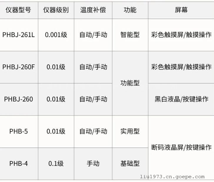 一、上海雷磁品牌PHB-4型是一款基础性便携式PH计,仪器级别0.1级,PH计支持手动温度补偿,适用于现场测量。相关便携式型号选择见下图,更多选型咨询,欢迎来电咨询!