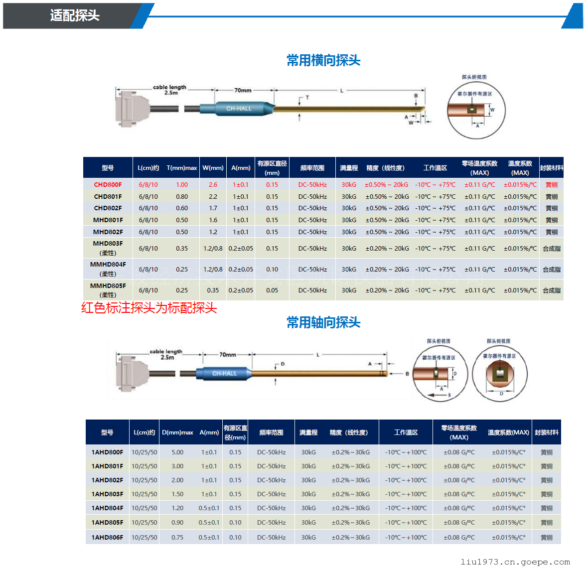 砷化镓 Hall 探头是翠海一项高技术产品,它具有同类产品MIN封装尺寸,轴向探头可做到径向直径 0.9mm。横向探头可做到厚度 0.5mm,是目前世界上封装尺寸MIN的探头。其具有磁线性度好,一致性 好,温漂微小等特点。还可定制耐高低温探头满足特殊需要。宁波凯诺仪器为翠海磁磁通计/高斯计/特斯拉计等磁性性能测试产品特约代理商,欢迎新老客户来电咨询。