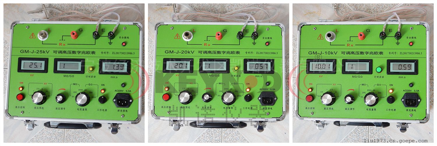 型号:GM-J-10kV 加工定制:否 类型:数字式 测量范围:0.01MΩ~1999000 MΩ 测试电压:0.25、0.5、1、2.5、5、10 V 重量:5 kg 尺寸:360*300*250mm GM-J-10kV数字兆欧表 可调高压