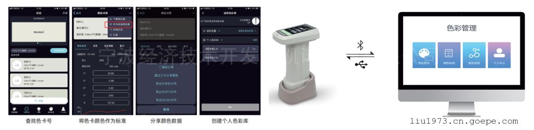 9.随仪器附送强大的Windows色彩管理系统ColorExpert,功能齐备,拥有四大功能模块:我的色彩、颜色检测、配色系统、个人中心,通过蓝牙或USB线连接。