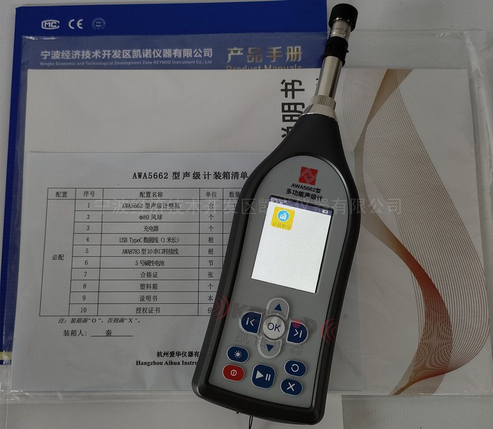 宁波凯诺仪器总代理销售爱华声级计,AWA5662积分多功能声级计符合GB/T 3785.1—2023/IEC61672-1:2013 1级标准,具有总值积分、统计积分等测量功能,模块化设计,客户可根据需要选择合适的模块,仪器还具有大容量存贮、录音、U 盘等功能。该仪器可广泛应用于环境保护、劳动卫生、工业企业、科研教学等领域。它可以完成环境噪声测量、职业卫生噪声测量、机器设备噪声测量等任务。