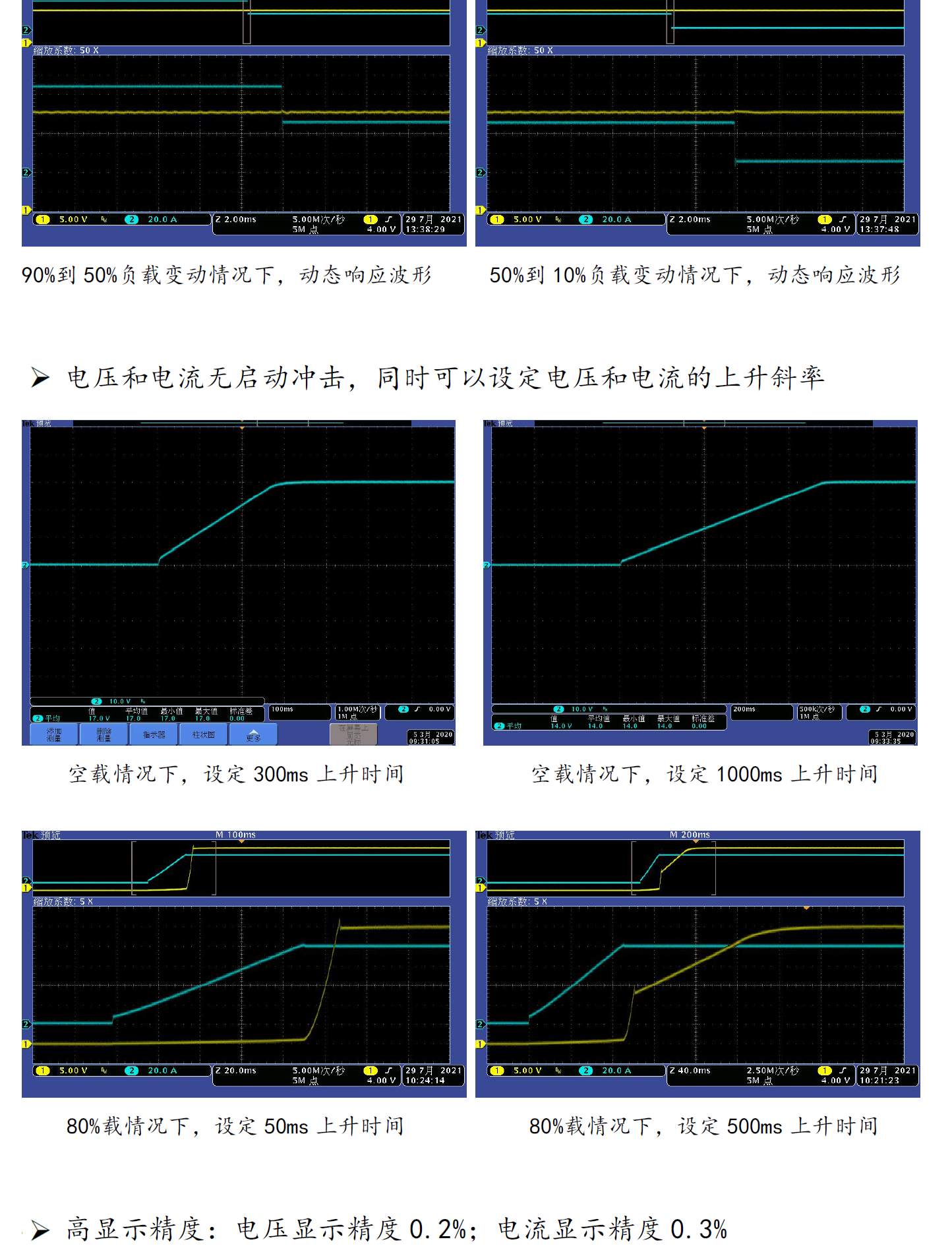 7.启动无过冲,并且可设定电压和电流的上升斜率