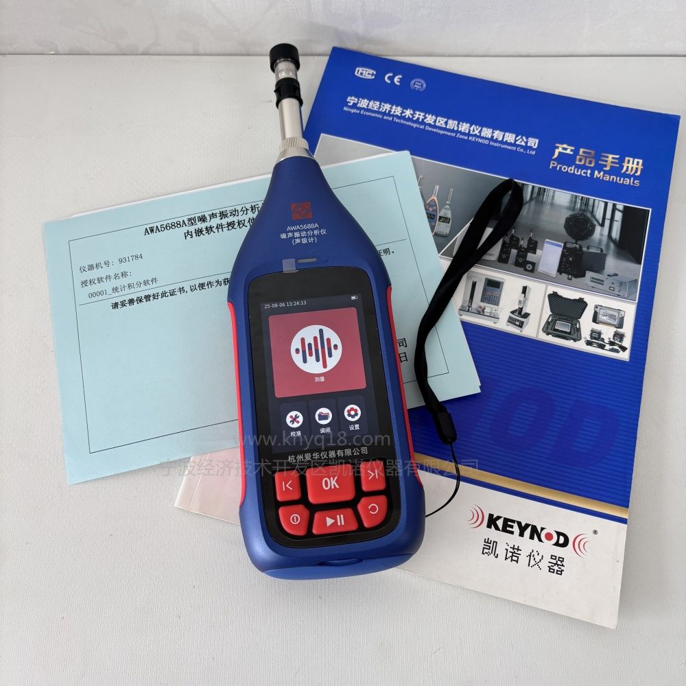 一、杭州爱华新款噪声振动分析仪(声级计)AWA5688A,声级计符合GB/T 3785.1-20232级/IEC 61672-1:2013 Class 2标准,采用数字信号处理技术,支持多指标同步分析,可选配功能包括总值积分、统计积分、24小时测量、1/1 OCT分析、1/3 OCT分析、声暴露级测量、室内测量,模块化设计用户可按需扩展功能。内置4G/蓝牙无线传输与北斗定位系统,实现测量数据实时回传与地理标记,可选配微型打印机现场输出结果,大幅提升工作效率;精密录音功能,便于后期数据分析;可选配振动传感器扩展振动测试功能。