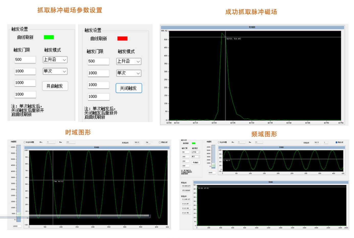 一、脉冲磁场测量系统CH-1600S主要包含有高斯计主机、高频测试磁场传感器、高斯计数据采集卡和显示软件组成。其中高斯计主机提供高精度横流电源使得磁场传感器正常工作并通过仪器校准保证磁场测量在一定的高精度范围之内,高频磁场传感器具有磁场响应频率高、线性度好、磁场测量范围大等优点满足目前市面上大多数高频磁场的测量需求;高斯计数据采集卡可实时高速采集高斯计的模拟电压信号并上传到上位机显示软件中进行实时显示和分析,使得实时呈现出磁场的变化关系,也可在软件中对采集的实时数据或波形进行保存和FFT处理,以得到我们需要的磁场现象。