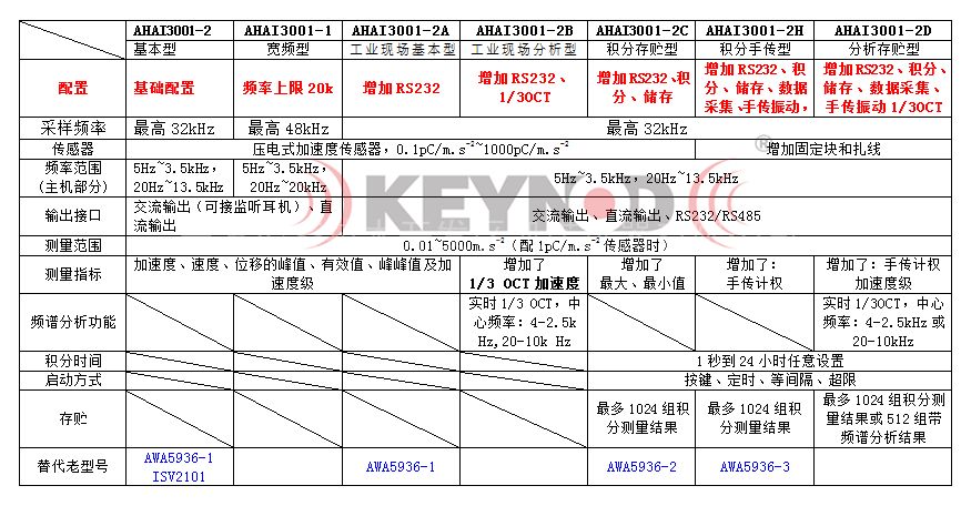附:AHAI3001工作测振仪标准配置表(非标可定制):